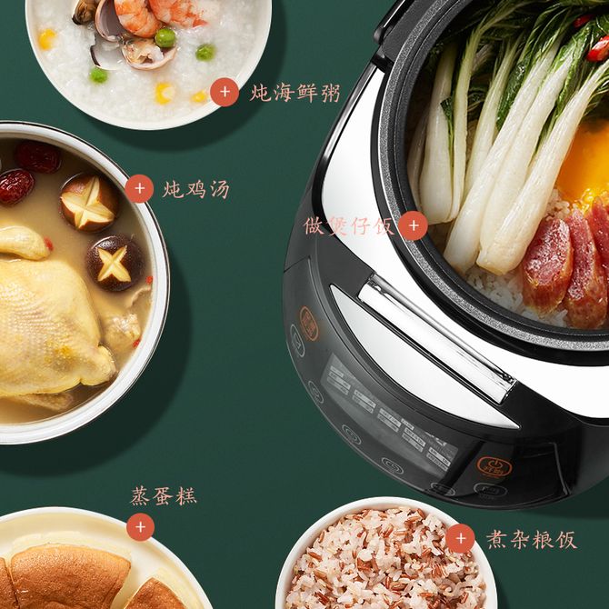 组合销售 产品介绍 产品规格 售后服务 产品咨询 发现好货 苏泊尔(SUPOR) 电饭煲电饭锅4L大容量 不粘内胆4-6个人前置大屏面板24小时预约上蒸下煮多功能家用智能SF40FC0063 7700 里程 美菱/MELNG 电饭煲3L触控式预约定时MF-LC3005 4400 里程 美的(Midea) 电饭煲 家用3L智能预约多功能电饭锅小型1-4人煮饭锅智能 白色 MB-FB30M161 7800 里程 美的/Midea 电饭煲电饭锅3-4个人家用4L大容量聚能釜金属机身大火力米饭锅【升级焖香阀】RE417 8700 里程 九阳/Joyoung 电饭煲电饭锅3L大火力智能预约多功能焖煮防溢家用迷你煮饭锅F-30FZ630 7700 里程