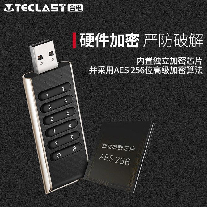 台电(TECLAST)32G加密U盘 数字键盘按键硬件加密数据安全闪存盘/优盘 坚固耐用 防水抗摔