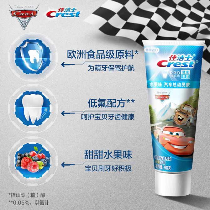 佳洁士健康专家系列儿童牙膏水果味汽车总动员90克*3(德国进口)