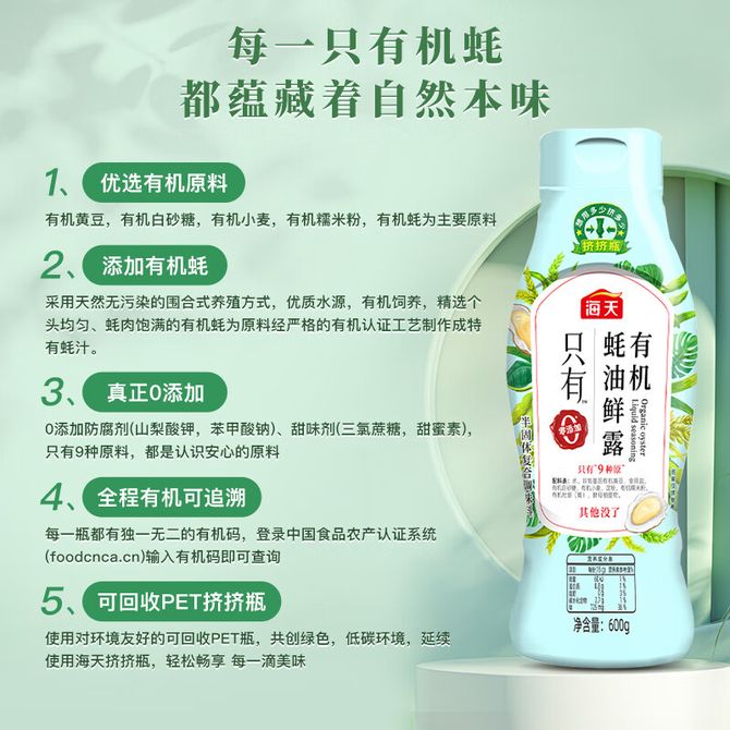 海天 零添加有机蚝油鲜露600g 0添加防腐剂甜味剂 有机生产 拒绝激素 拒绝农药 拒绝化肥 兑换价格 1300 里程 会员卡别 终身白金卡 白金卡 金卡 银卡 普通卡 儿童卡 服务 由 深圳房易通科技有限公司 发货并提供售后 油品规格: 510ml 购买数量: 件 库存件 配送地址: 立即购买 加入购物车 成功添加到购物车 关闭 购物车共有 种商品 总金额为: