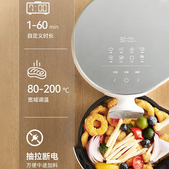 组合销售 产品介绍 产品规格 售后服务 产品咨询 发现好货 苏泊尔(SUPOR)空气炸锅 家用多功能4.2L大容量 烤箱薯条机 无油烟电炸锅 大功率 无油低脂煎炸锅KJ42D811 6500 里程 苏泊尔(SUPOR)空气炸锅家用3L大容量电炸锅 蒸汽嫩炸多功能无油烟煎炸薯条机烤箱KD30DQ815 21700 里程 美的/Midea 空气炸锅 家用5升可视炸锅金属内腔体微蒸汽多功能智能双旋控温电炸锅 KZE5089 10900 里程 美的/Midea 空气炸锅 可视 不用翻面 金属内腔 蒸汽嫩炸 三档烘烤风力 5L KZC5089 10700 里程 小熊/Bear 空气炸锅 4D漩烤不用翻面 全自动 5L实用大容量 可视 蒸汽嫩炸 控油脱脂 炸烤箱一体机 9100 里程