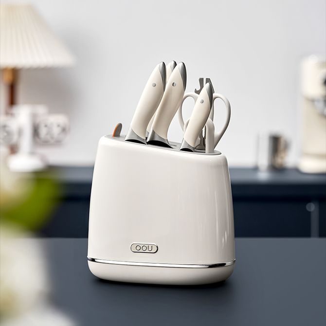 OOU 鲸系列 白色德国刀具套装厨房厨具菜刀家用切菜板砧板二合一组合刀架