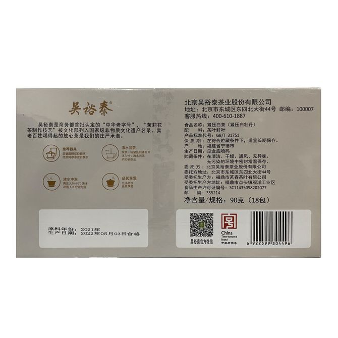 吴裕泰丹凤朝阳白牡丹白茶紧压茶小包装茶叶办公用茶90g