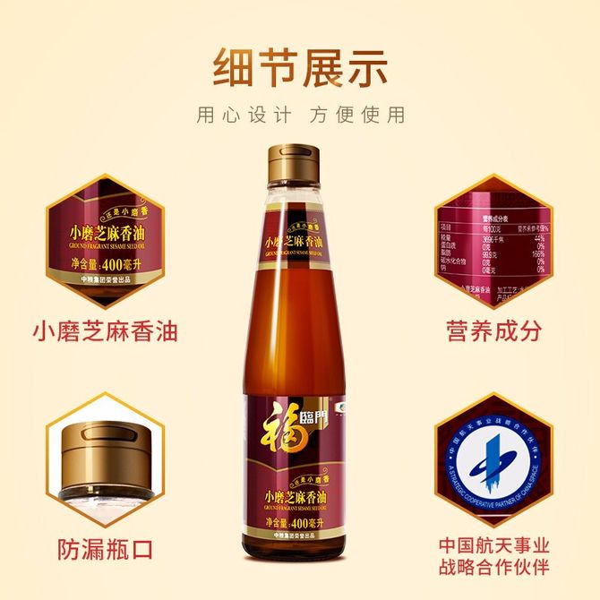 福临门 食用油 凉拌调味烹饪火锅 一级小磨 芝麻香油400mL 中粮出品