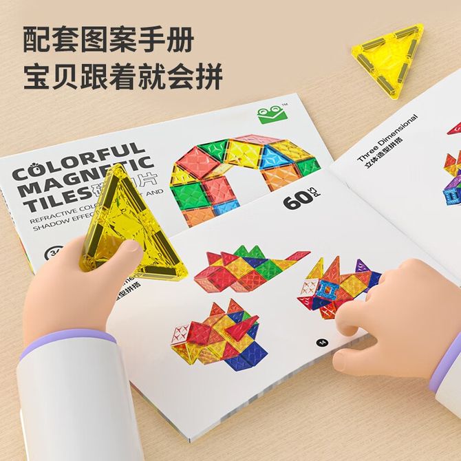 百变拼装,强劲永磁,大尺寸防误吞,多维度开发,发挥想象,创意拼搭阶段启蒙玩法,开拓空间思维