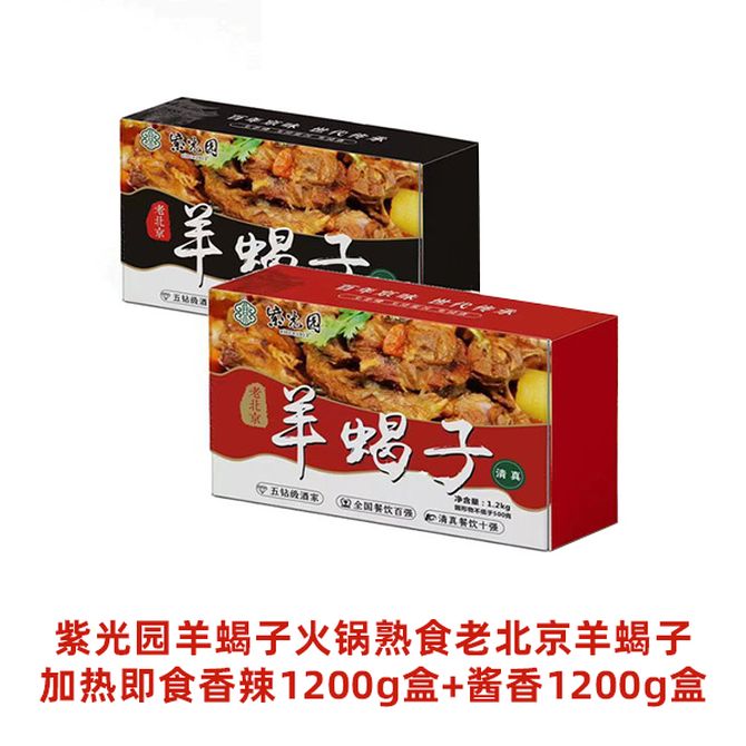 紫光园老北京羊蝎子火锅加热即食香辣1200g/盒+酱香1200g/盒