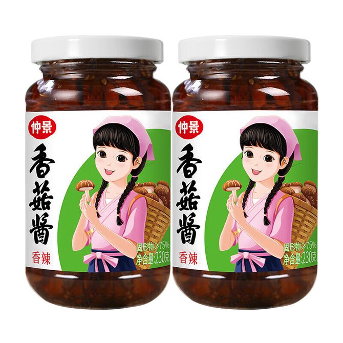 仲景香菇酱暴下饭菜招牌拌饭拌面蘑菇酱夹馍菌菇炒饭酱料香辣230g*2瓶