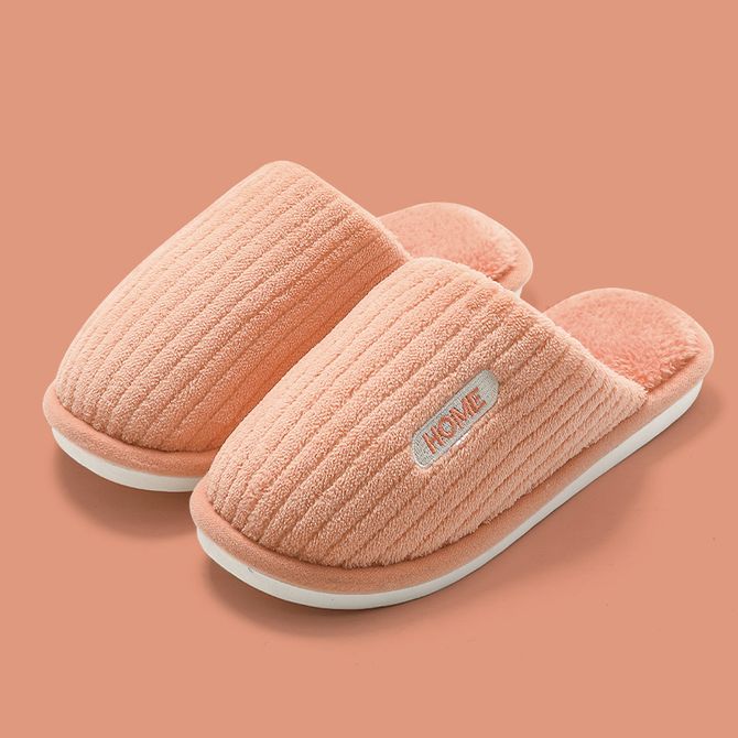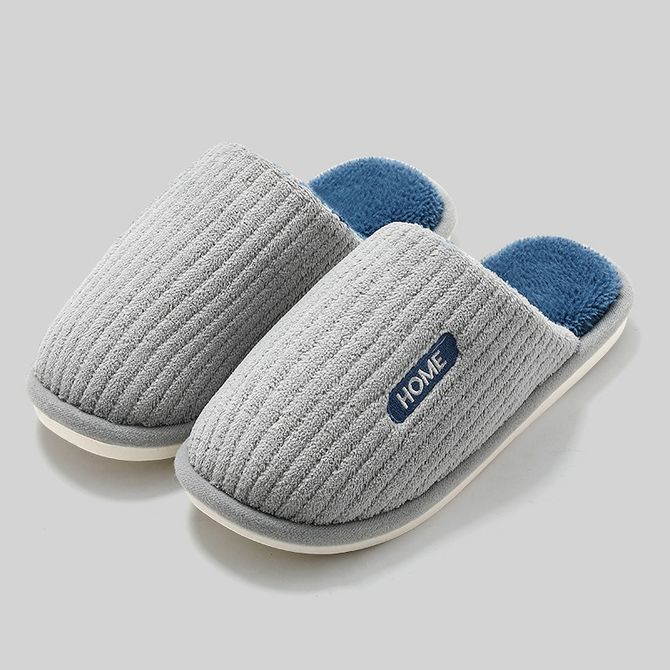 凯诗风尚简约条纹家居拖鞋棉拖鞋秋冬季舒适保暖男女纯色家居拖鞋室内棉鞋黑色42-43码