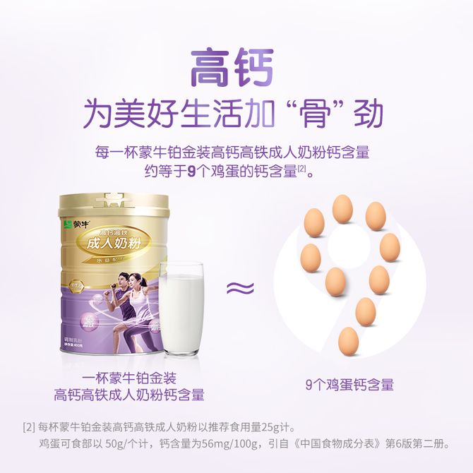 蒙牛铂金装多维高钙高铁成人奶粉800g/罐