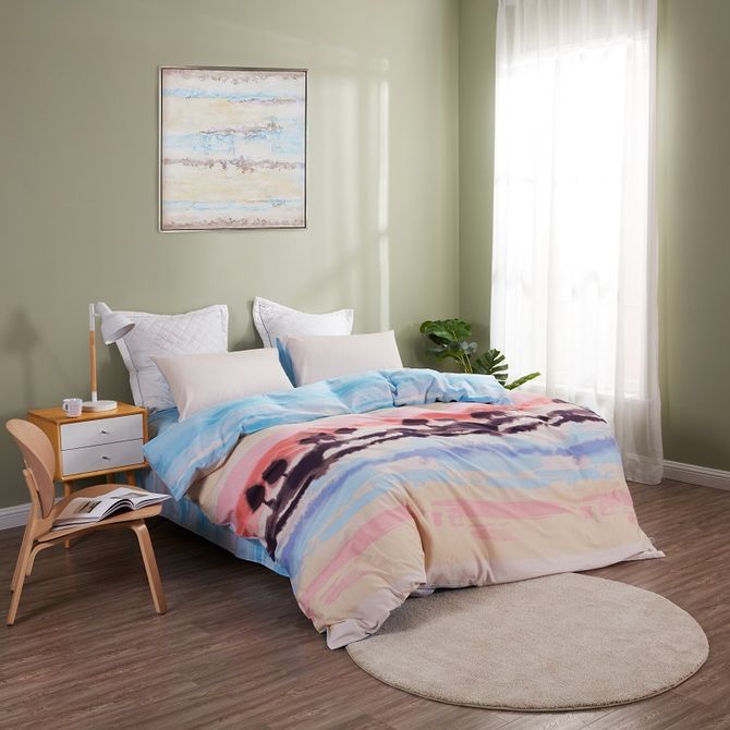 1.5米/1.8米床通用;被罩:200cm*230cm;被单:230*241cm;枕套:48*74cm*2;全棉磨毛、体感舒适、暖柔舒眠;AB版设计不同风格,随意切换;吸湿透气;面料:100%棉