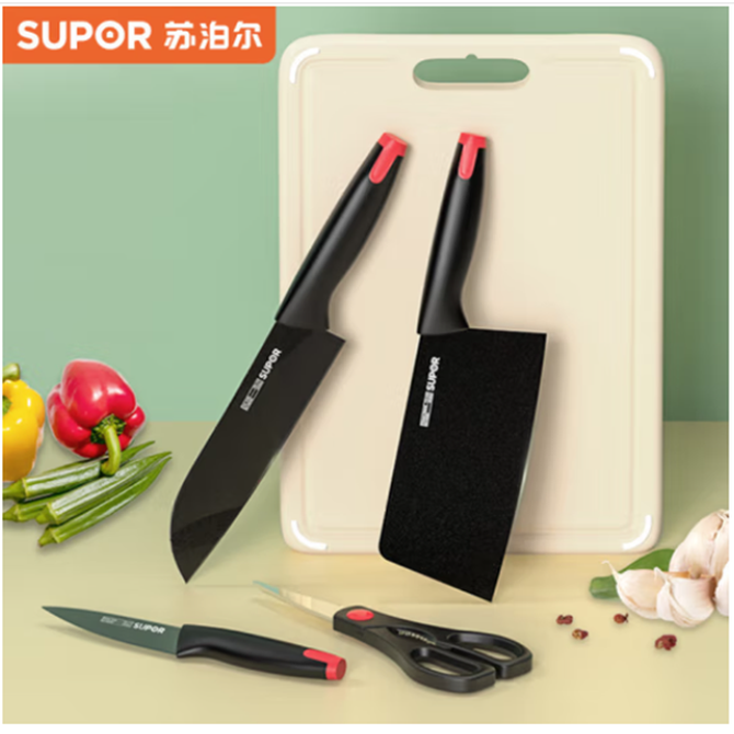 苏泊尔(SUPOR)锋匠刀具五件套TK21119V(切片刀*1多用刀*1多用剪刀*1水果刀*1砧板*1)