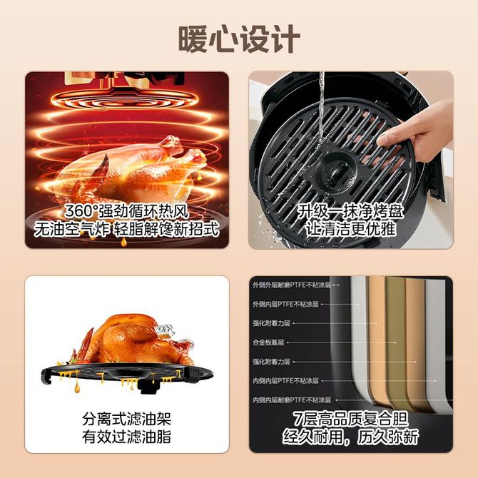 组合销售 产品介绍 产品规格 售后服务 产品咨询 发现好货 美的/Midea 空气炸锅 5L可视窗口免翻面电炸锅 双旋钮控时控温 食品接触不粘涂层 MF-KZE5089 8700 里程 美的/Midea 空气炸锅家用新款一体多功能免翻面电炸锅电烤箱华凌烹饪机KZE4501TQ 6500 里程 荣事达5.5L大容量 家用智能触控多功能空气炸锅 RS-AF181L 10900 里程 美的/Midea 空气炸锅 5L家用大容量 可视窗口 免翻面 蒸汽嫩炸 金属内腔 多功能智能精准控温 电炸锅KZC5089 5L 10700 里程 美的/Midea 空气炸锅 免翻面可视家用大容量 5L 多功能 不沾易洗 蒸汽嫩炸 9600 里程