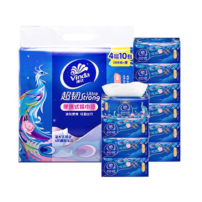 维达超韧国潮抽纸2提装4层20抽10包/提新旧包装随机发 国潮颜值便携设计外出更方便进口木浆 兑换价格 1300 里程 会员卡别 终身白金卡 白金卡 金卡 银卡 普通卡 儿童卡 服务 由 上海耀嬉网络科技有限公司 发货并提供售后 包装数量: 2提 购买数量: 件 库存件 配送地址: 立即购买 加入购物车 成功添加到购物车 关闭 购物车共有 种商品 总金额为: 组合销售 产品介绍 产品规格 售后服务 产品咨询 发现好货 维达 Vinda 卷纸 140g/卷*10卷 蓝色经典3层卫生纸 1300 里程 心相印抽纸 茶语丝享系列 量贩家庭装 3层*100抽*4包(茶香 压花) 1100 里程 心相印 经典系列 二层面巾纸 180抽*6包*1提 1100 里程 维达Vinda 超韧系列抽纸(3层*130抽*6包) 原生木浆卫生餐巾纸婴儿面巾纸 6包优惠装 1100 里程 心相印抽纸茶语丝享系列3层130抽面巾纸*6包纸巾 1300 里程