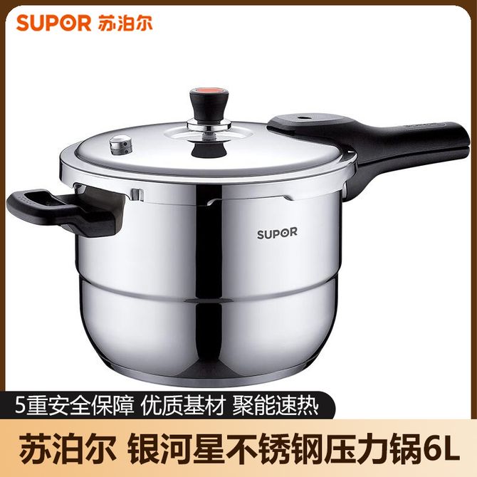 苏泊尔(SUPOR) 6L容量高压锅 家用厨房烹饪304不锈钢锅具 银河星不锈钢压力锅压力焖煮 燃气灶电磁炉通用高压锅 【该款为6L容量压力锅,详情共用】5重安全保障,优质基材,聚能速热 兑换价格 15700 里程 会员卡别 终身白金卡 白金卡 金卡 银卡 普通卡 儿童卡 商品已下架 1. 请联系卖家咨询 2. 逛逛广西桂雅文化传媒有限公司选择其他商品 组合销售 产品介绍 产品规格 售后服务 产品咨询 发现好货 爱仕达/ASD 高压锅燃气明火防爆六保险5.3L铝合金22CM家用压力锅YL22S2WG 5500 里程 炊大皇(COOKER KING) 压力锅高压锅7重安全防爆8L适合4-8人燃气电磁炉通用 24cm 12200 里程 双喜 华康装铝压力锅 22CM/5.5L高压力密封圈防爆锅具明火专用高压锅LM06C22 5200 里程 双喜小康装铝压力锅20CMLM-06C 5000 里程 爱仕达/ASD 高压锅304不锈钢六保险5.5L压力锅燃气电磁炉通用WG1822DN 9100 里程