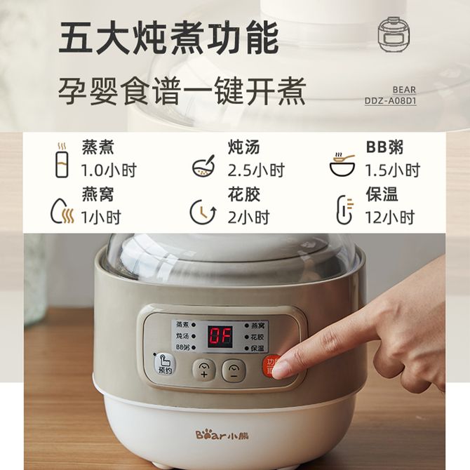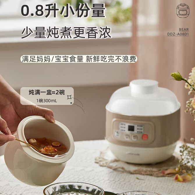 小熊/Bear 迷你电炖盅宝宝婴儿辅食机bb煲预约定时煮粥电炖锅小型燕窝炖盅隔水柔炖煲汤锅D-DZ-A08D1 营养隔水炖、BB煲,预约、定时、保温、防干烧小巧实用 兑换价格 3900 里程 会员卡别 终身白金卡 白金卡 金卡 银卡 普通卡 儿童卡 商品已下架 1. 请联系卖家咨询 2. 逛逛北京致诚博雅贸易有限公司选择其他商品 组合销售 产品介绍 产品规格 售后服务 产品咨询 发现好货 小熊/Bear 电炖锅1-2人小炖锅煮粥锅智能预约定时煲汤锅炖汤锅燕窝炖盅 4400 里程 苏泊尔(SUPOR) 电火锅家用不粘煎涮炖煮多功能4L大容量一体式大火力电煮锅不粘煎涮炖煮多功能料理锅 H40YK757 5700 里程 西屋/Westinghouse 多功能电煮锅电炖锅1.6L一锅多能WFB16A 11600 里程 苏泊尔(SUPOR) 电火锅 宿舍小电锅学生寝室一体泡面小火锅 多功能锅涮肉涮菜 1.7L 【 单锅】H17YK489 3000 里程 小熊(Bear)电炖锅电炖盅煮粥神器煲汤锅炖汤锅婴儿煮粥锅熬粥燕窝炖盅DDG-E15K2 4800 里程