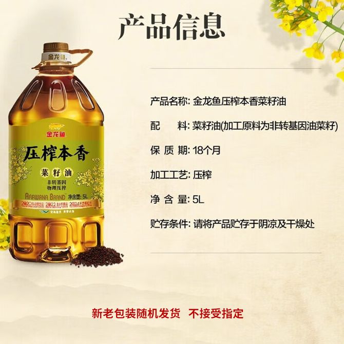 配置:压榨本香菜籽油5L*4桶