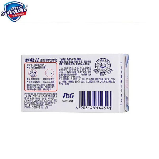 舒肤佳/Safeguard 纯白清香洗澡沐浴香皂肥皂100g*3块/100g*5块/100g*6块 规格为300g的是3块、规格为500g的是5块、规格为600g的是6块香皂 兑换价格 1100-1600 里程 会员卡别 终身白金卡 白金卡 金卡 银卡 普通卡 儿童卡 服务 由 中拓优选商城 发货并提供售后 化妆品容量: 300g/ml 500g/ml 600g/ml 购买数量: 件 库存件 配送地址: 立即购买 加入购物车 成功添加到购物车 关闭 购物车共有 种商品 总金额为: 组合销售 产品介绍 产品规格 售后服务 产品咨询 发现好货 舒肤佳洗手液纯白清香420ml+芦荟420ml (抑菌99.9% 温和洁净)(新老包装随机发货) 2200 里程 舒肤佳 焕肤红石榴108gX3 香皂(新老包装随机发货) 1800 里程 舒肤佳香皂超值六块装(纯白4块+薰衣草2块) 1400 里程 舒肤佳香皂100g*4块纯白清香 1100 里程 舒肤佳/Safeguard 香皂超值四块装(2纯白+2柠檬) 1100 里程