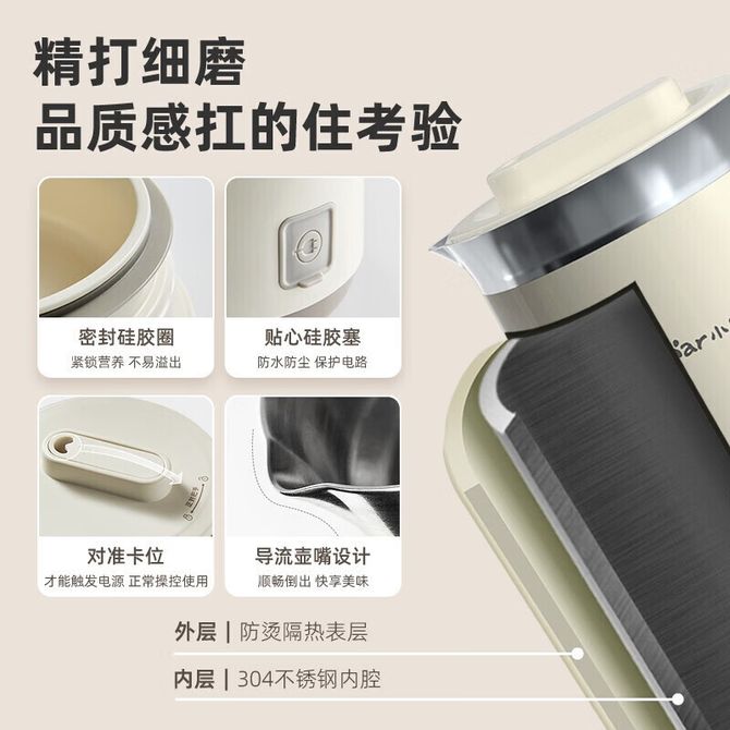 组合销售 产品介绍 产品规格 售后服务 产品咨询 发现好货 WIFER 豆浆机大容量破壁机料理机全自动榨汁机免滤304钢1200ML 3500 里程 WIFER 豆浆机全自动静音大容量多功能免煮免过滤辅食榨汁破壁机316钢不锈钢豆浆机米色豆浆机1.2L 4400 里程 九阳 Joyoung 破壁免洗豆浆机0.4-1.5L超大容量 智能熬煮多功能 轻松预约DJ15E-K350 52200 里程 小熊/Bear 豆浆机1-2人家用免过滤免煮五谷杂粮多功能破壁机豆浆机小型迷你榨汁机高温一键清洗 米白色 DJJ-H05C1 6700 里程 摩 动/modong 豆浆机家用破壁机 全自动免煮辅食料理榨汁机 多功能小型预约保温 白色 1.2L -MD-DJ29 7400 里程