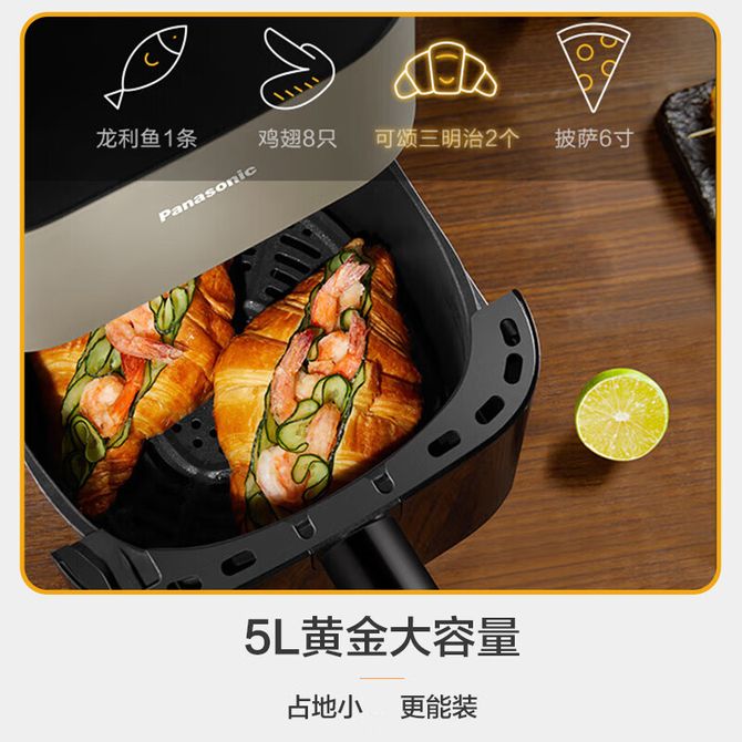 松下/Panasonic 空气炸锅多功能全景可视窗【蒸汽加湿】5L大容量无需翻面智能烤箱电炸锅薯条机NFHC500-S NTC精准控温 12道预设菜单 LED触控屏面板 一机多能 轻油低脂 兑换价格 29600 里程 会员卡别 终身白金卡 白金卡 金卡 银卡 普通卡 儿童卡 服务 由 北京致诚博雅贸易有限公司 发货并提供售后 颜色: 其他 购买数量: 件 库存件 配送地址: 立即购买 加入购物车 成功添加到购物车 关闭 购物车共有 种商品 总金额为: 组合销售 产品介绍 产品规格 售后服务 产品咨询 发现好货 苏泊尔(SUPOR)空气炸锅 家用多功能4.2L大容量 烤箱薯条机 无油烟电炸锅 大功率 无油低脂煎炸锅KJ42D811 6500 里程 苏泊尔(SUPOR)空气炸锅家用3L大容量电炸锅 蒸汽嫩炸多功能无油烟煎炸薯条机烤箱KD30DQ815 21700 里程 美的/Midea 空气炸锅 家用5升可视炸锅金属内腔体微蒸汽多功能智能双旋控温电炸锅 KZE5089 10900 里程 美的/Midea 空气炸锅 可视 不用翻面 金属内腔 蒸汽嫩炸 三档烘烤风力 5L KZC5089 10700 里程 小熊/Bear 空气炸锅 4D漩烤不用翻面 全自动 5L实用大容量 可视 蒸汽嫩炸 控油脱脂 炸烤箱一体机 9100 里程