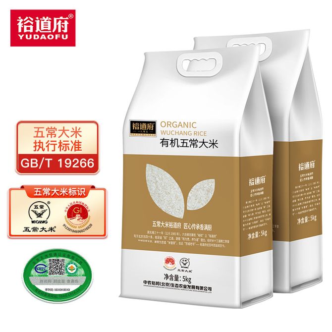 裕道府 五常有机大米5kg*2袋 真空包装锁鲜五常大米煮饭米组合袋装