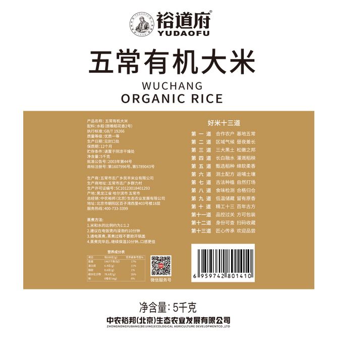 配置:五常有机大米5kg*2袋,包装升级新旧包装随机发货