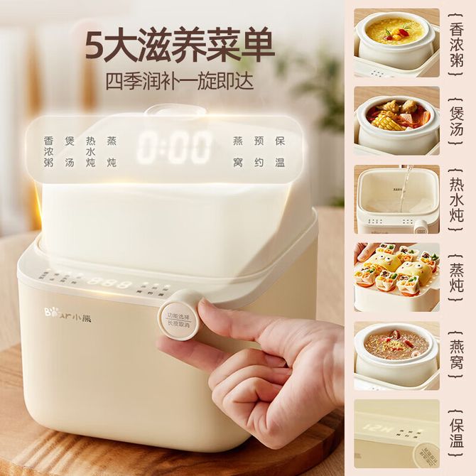 组合销售 产品介绍 产品规格 售后服务 产品咨询 发现好货 小熊/Bear 电炖锅1-2人小炖锅煮粥锅智能预约定时煲汤锅炖汤锅燕窝炖盅 4400 里程 苏泊尔(SUPOR) 电火锅家用不粘煎涮炖煮多功能4L大容量一体式大火力电煮锅不粘煎涮炖煮多功能料理锅 H40YK757 5700 里程 西屋/Westinghouse 多功能电煮锅电炖锅1.6L一锅多能WFB16A 11600 里程 苏泊尔(SUPOR) 电火锅 宿舍小电锅学生寝室一体泡面小火锅 多功能锅涮肉涮菜 1.7L 【 单锅】H17YK489 3000 里程 小熊(Bear)电炖锅电炖盅煮粥神器煲汤锅炖汤锅婴儿煮粥锅熬粥燕窝炖盅DDG-E15K2 4800 里程