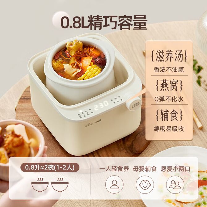 小熊/Bear 电炖盅 电炖锅 燕窝炖盅 隔水炖锅 婴儿辅食bb煲迷你小型煮粥煲汤锅0.8L小容量 D-DZA08W7蒸笼款 温润白瓷,热水快炖,5大滋养菜单,隔水柔炖,0.8升精巧容量,长效预约定时 兑换价格 4400 里程 会员卡别 终身白金卡 白金卡 金卡 银卡 普通卡 儿童卡 商品已下架 1. 请联系卖家咨询 2. 逛逛广西桂福礼供应链管理有限公司选择其他商品 组合销售 产品介绍 产品规格 售后服务 产品咨询 发现好货 小熊/Bear 电炖锅1-2人小炖锅煮粥锅智能预约定时煲汤锅炖汤锅燕窝炖盅 4400 里程 苏泊尔(SUPOR) 电火锅家用不粘煎涮炖煮多功能4L大容量一体式大火力电煮锅不粘煎涮炖煮多功能料理锅 H40YK757 5700 里程 西屋/Westinghouse 多功能电煮锅电炖锅1.6L一锅多能WFB16A 11600 里程 苏泊尔(SUPOR) 电火锅 宿舍小电锅学生寝室一体泡面小火锅 多功能锅涮肉涮菜 1.7L 【 单锅】H17YK489 3000 里程 小熊(Bear)电炖锅电炖盅煮粥神器煲汤锅炖汤锅婴儿煮粥锅熬粥燕窝炖盅DDG-E15K2 4800 里程