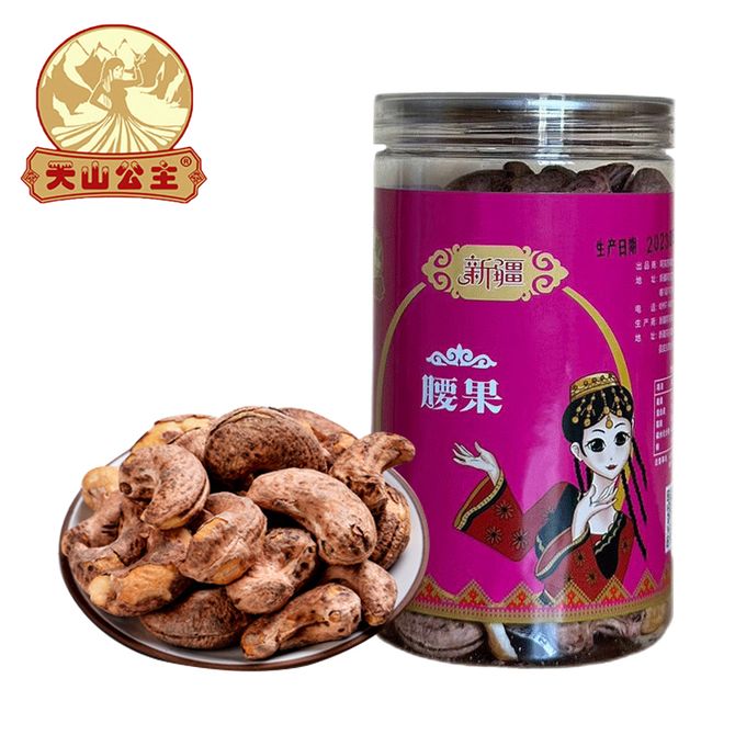 天山公主 新疆特产粒大饱满原色原味酥香脆甜紫皮炭烤腰果288g/罐