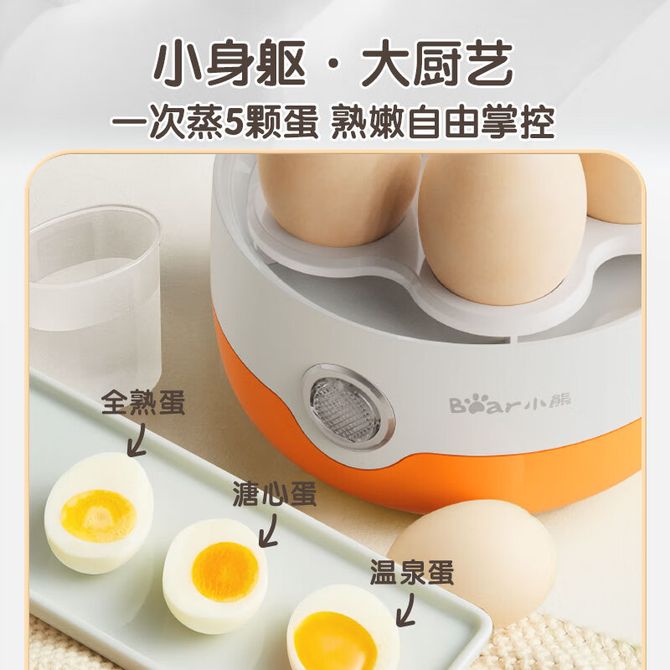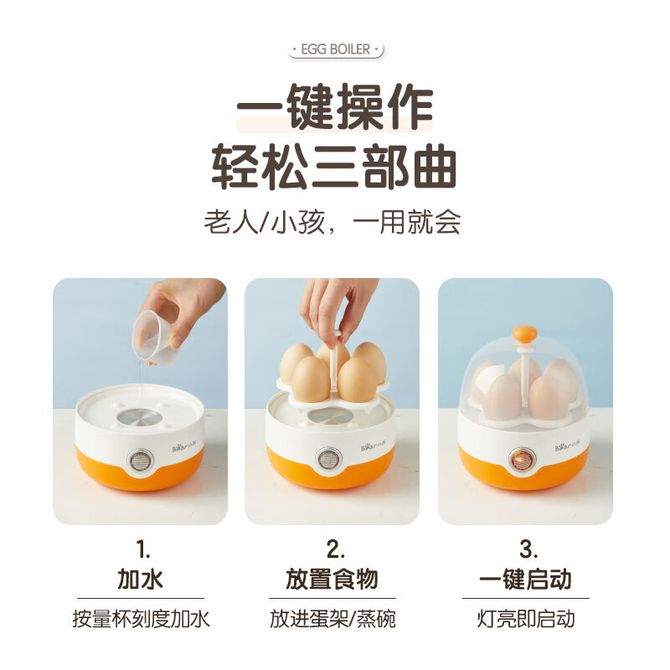 小熊/Bear 煮蛋器蒸蛋器单层家用自动断电迷你鸡蛋羹器蒸鸡蛋器蒸蛋机ZDQ22-01 柔软提手 防滑防烫 控温系统 自动断电 兑换价格 2200 里程 会员卡别 终身白金卡 白金卡 金卡 银卡 普通卡 儿童卡 服务 由 北京致诚博雅贸易有限公司 发货并提供售后 颜色: 橙色 购买数量: 件 库存件 配送地址: 立即购买 加入购物车 成功添加到购物车 关闭 购物车共有 种商品 总金额为: