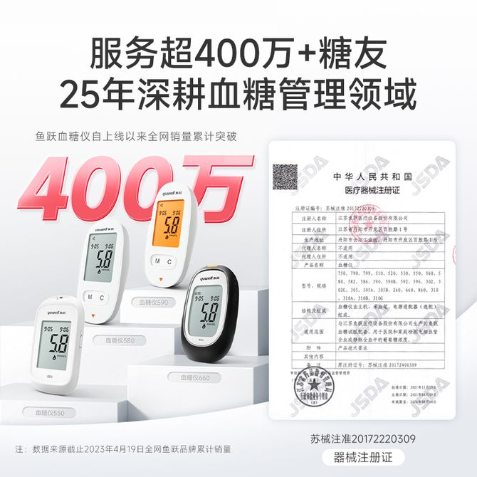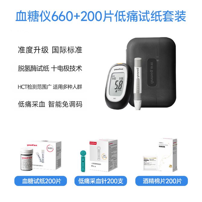 鱼跃660血糖仪+200(试纸+低痛采血针+酒精棉片)