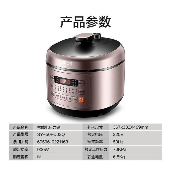 组合销售 产品介绍 产品规格 售后服务 产品咨询 发现好货 苏泊尔(SUPOR)电压力锅 6升大容量 智能触控 球釜双胆 开盖收汁 一键排压 SY-60YC8001Q 高压锅 16900 里程 美的/Midea 电压力锅家用5L大容量多功能高压锅双胆一键收汁智能预约不粘电高压锅电饭锅煮粥煲汤锅 一锅双胆【一键收汁入味】 YL50M1-702 10600 里程 苏泊尔(SUPOR) 5L电压力锅家用电高压锅双胆高压电饭锅煮饭智能预约 SY-50YC8186 11300 里程 美的/Midea 电压力锅 【一锅双胆】5L全自动家用智能预约 上蒸下煮 不粘双胆煲汤炖肉 YL50Q3-451 10900 里程 美的/Midea 电压力锅 高压锅家用电压力煲智能预约电饭煲大容量多功能定时预约电饭煲3-8人单胆旋钮款4L MY-E4809 8700 里程