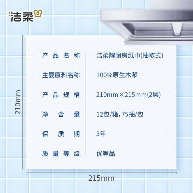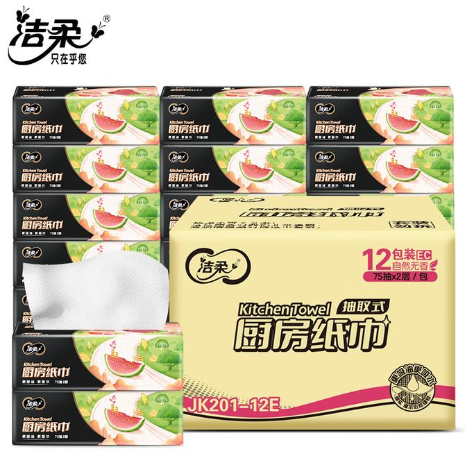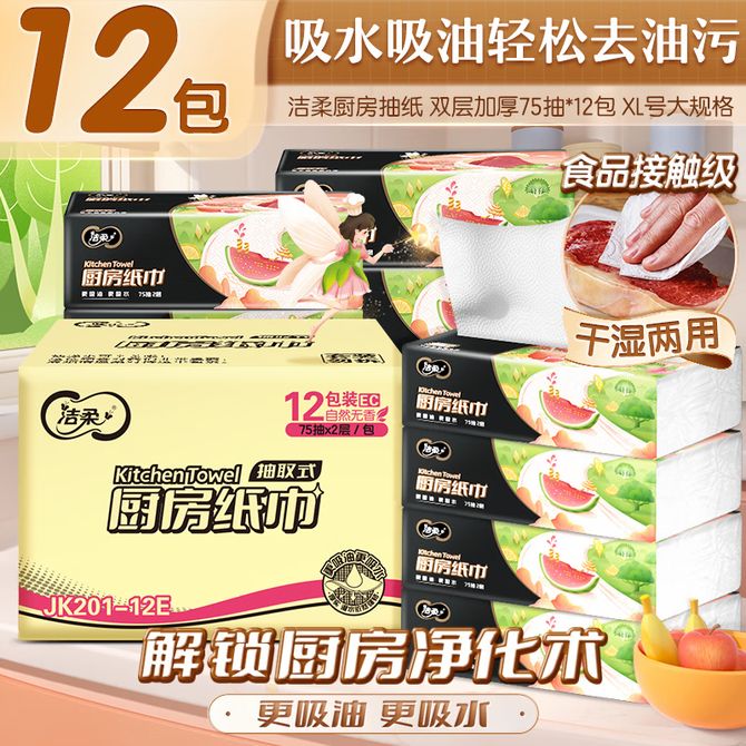 洁柔 (C&S)抽取式厨房纸巾 2层75抽12包 加厚双层厨房纸吸水吸油轻松去油污 干湿两用厨房专用纸巾