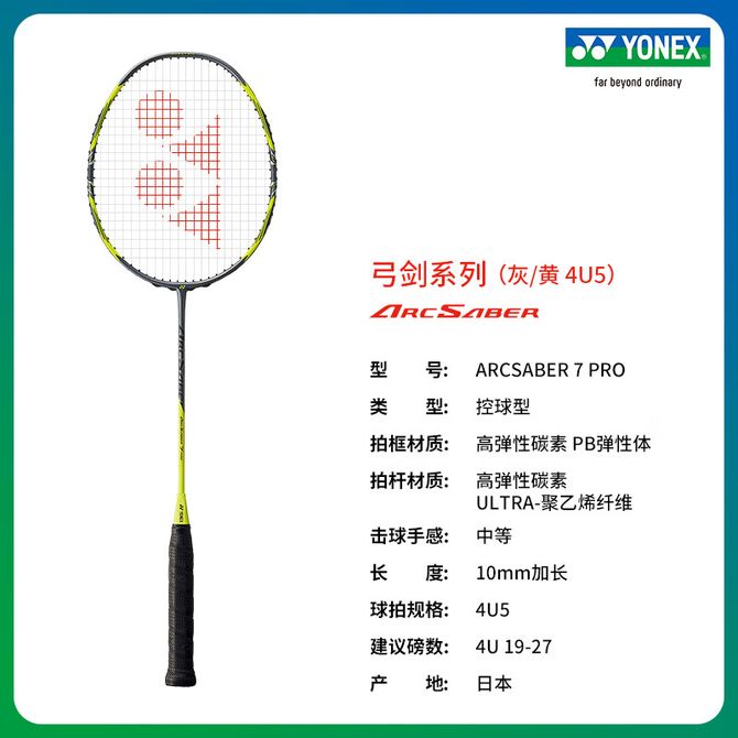 尤尼克斯(YONEX) 弓剑系列 日本制碳素轻量羽毛球拍yy ARCSABER 7 PRO 灰/黄 赠线、手胶,免费穿好线,拿到手即可用,附带原装拍包 兑换价格 73100 里程 会员卡别 终身白金卡 白金卡 金卡 银卡 普通卡 儿童卡 服务 由 小雅运动 发货并提供售后 颜色: 黄色 购买数量: 件 库存件 配送地址: 立即购买 加入购物车 成功添加到购物车 关闭 购物车共有 种商品 总金额为: