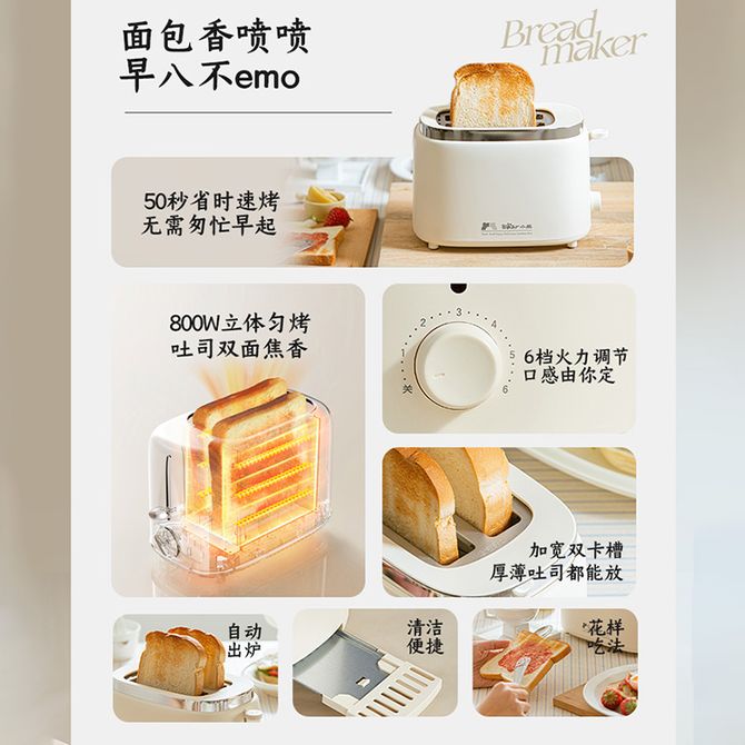 组合销售 产品介绍 产品规格 售后服务 产品咨询 发现好货 小熊/Bear 多士炉家用小型吐司三明治面包机烤面包机馒头片机加热机速烤DSLC02W1浅绿色 3500 里程 小熊/Bear 面包机 DSL-C02W1 3500 里程 小熊/Bear 多士炉早餐烤吐司机烤三明治面包片多功能轻食机面包机 3500 里程 利仁(Liven)电饼铛 家用三明治机早餐机多功能双面加热可拆洗蛋糕机 C-2Q 4400 里程 东菱/Donlim 全自动面包机家用揉面机自动撒果料 可预约 多功能和面机DL-TM018 17000 里程
