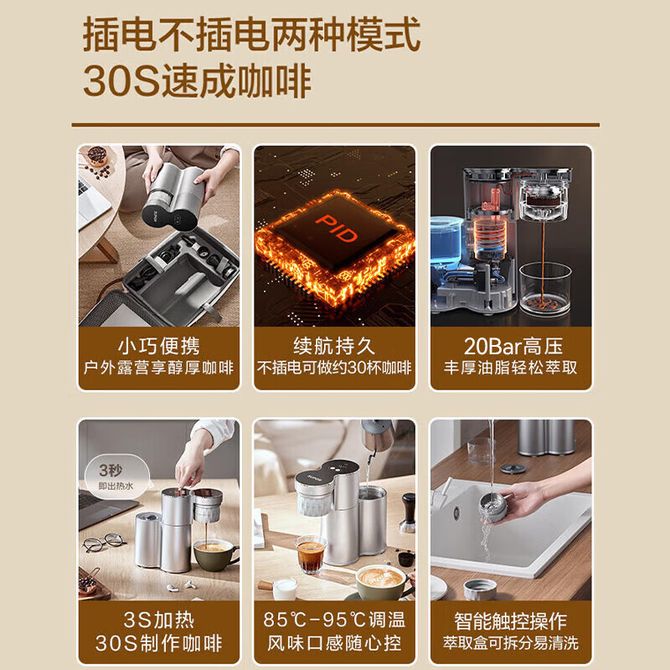 苏泊尔(SUPOR) 意式浓缩家用半自动咖啡机办公室小型露营便携摩卡手冲壶SWCFP201 小巧身姿,3S加热,20bar高压,85°C~95°C可调,智能触控,可拆分萃取盒 兑换价格 60900 里程 会员卡别 终身白金卡 白金卡 金卡 银卡 普通卡 儿童卡 服务 由 广西桂福礼供应链管理有限公司 发货并提供售后 颜色: 其他 购买数量: 件 库存件 配送地址: 立即购买 加入购物车 成功添加到购物车 关闭 购物车共有 种商品 总金额为: