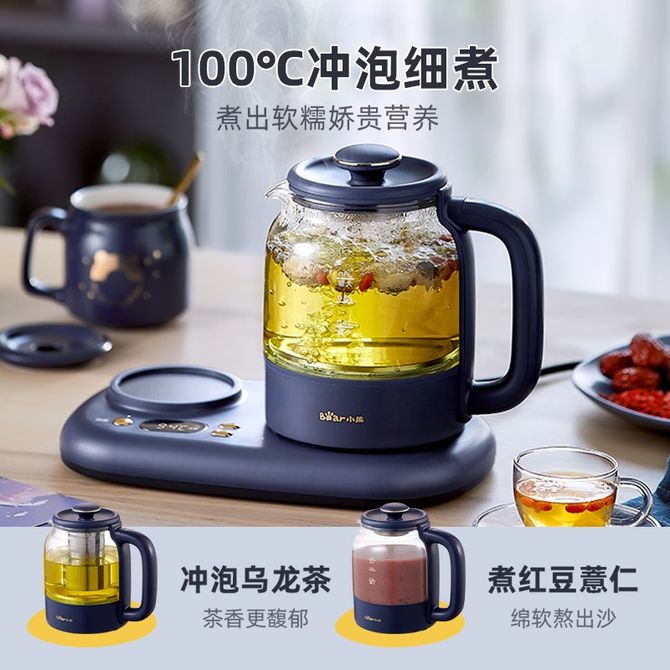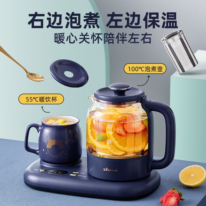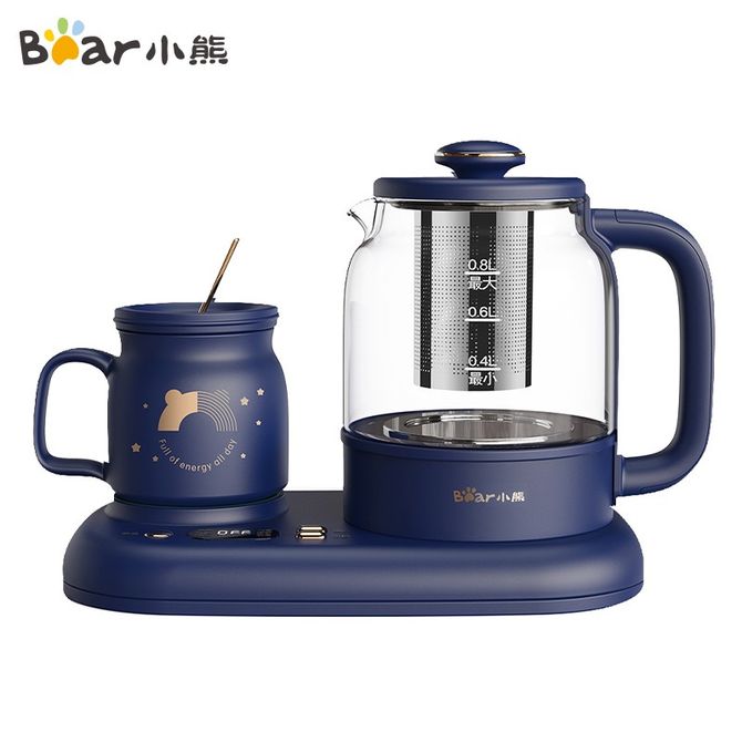 小熊/Bear 养生壶 组合套装 0.3L保温杯垫 恒温花茶壶煮茶器电热水壶全自动家用办公烧水壶煮茶壶 大气蓝24h保温 YSH-C08V1 0.8L