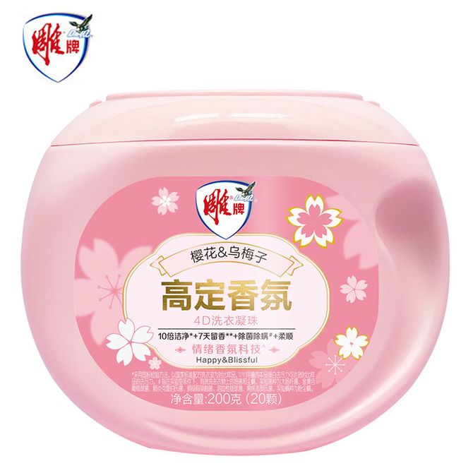 雕牌 洗衣凝珠 20颗 单盒装 高定香氛4D独立四腔 家用除菌除螨持久留香洁净柔顺洗衣球洗衣凝珠 樱花&乌梅子香型