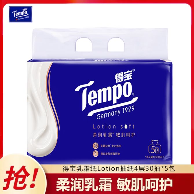 得宝 (TEMPO)乳霜纸 抽纸 Lotion系列软抽 4层30抽*5包 柔软亲肤保湿婴儿纸巾 柔润亲肤,进口乳霜成分,保湿柔韧,1w+保湿因子,四层加厚 兑换价格 1300 里程 会员卡别 终身白金卡 白金卡 金卡 银卡 普通卡 儿童卡 服务 由 京狮文化生活馆 发货并提供售后 包装数量: 1提 购买数量: 件 库存件 配送地址: 立即购买 加入购物车 成功添加到购物车 关闭 购物车共有 种商品 总金额为: