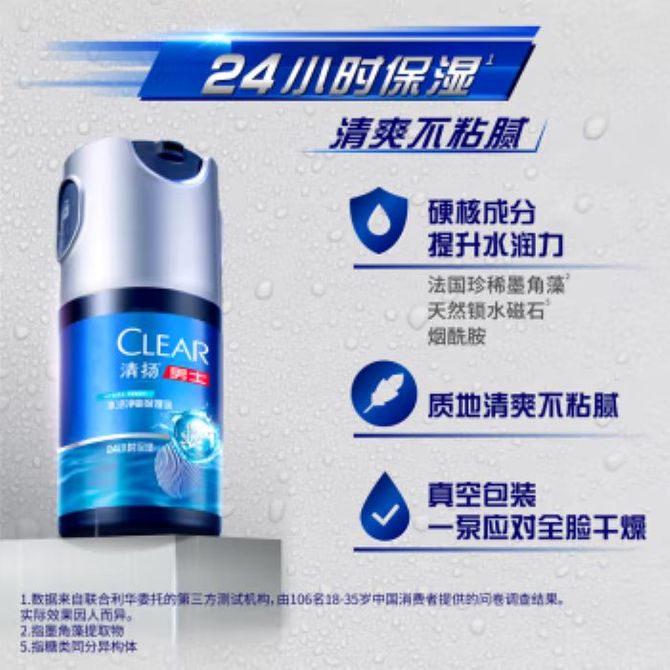 清扬 男士水活净能保湿乳50g脸部面霜补水保湿滋润乳液
