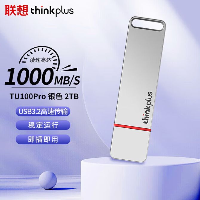 联想(Lenovo) thinkplusTU100 PRO 固态优盘/512GB 移动闪存金属商务便携/USB3.2 高速传输 读速高达1000MB/S 银色