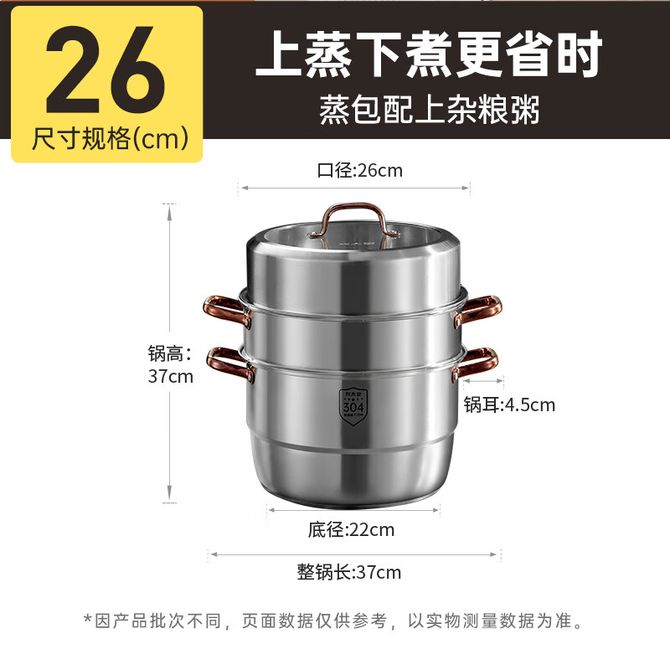 组合销售 产品介绍 产品规格 售后服务 产品咨询 发现好货 苏泊尔(SUPOR) 蒸锅不锈钢28cm复底双层SZ28B5蒸鱼蒸馒头蒸馍大蒸锅蒸笼 8700 里程 德铂(Debo)汤锅不锈钢单层蒸锅蒸笼电磁炉两用锅艾琳诺26cm DEP-DS146 2100 里程 拜格(Bayco) 蒸锅三层家用蒸馒头煲汤加厚汤锅BG1548【28cm】 3000 里程 炊大皇(COOKER KING) 304不锈钢三层蒸锅家用复合底汤锅蒸馒头包子可视可立高拱盖30cm 6100 里程 德铂(Debo) 科洛姆双层蒸锅不锈钢汤锅20cm不挑炉灶DEP-913 2600 里程