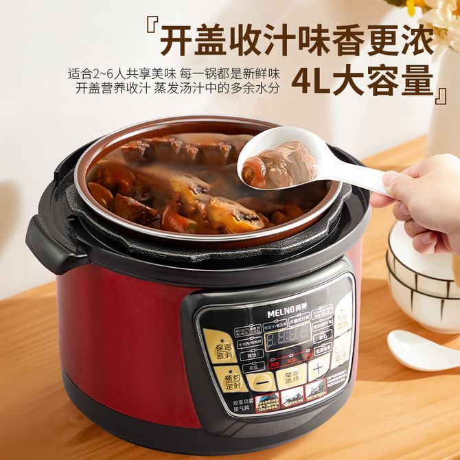 美菱/MELNG 电压力锅智能定时预约高压锅多功能锅电煮锅 ML-LC4007 4升容量,10大菜单,24小时预约,一锅多用 兑换价格 12600 里程 会员卡别 终身白金卡 白金卡 金卡 银卡 普通卡 儿童卡 服务 由 弘济家电 发货并提供售后 颜色: 红色 购买数量: 件 库存件 配送地址: 立即购买 加入购物车 成功添加到购物车 关闭 购物车共有 种商品 总金额为: 组合销售 产品介绍 产品规格 售后服务 产品咨询 发现好货 苏泊尔(SUPOR)电压力锅 6升大容量 智能触控 球釜双胆 开盖收汁 一键排压 SY-60YC8001Q 高压锅 16900 里程 美的/Midea 电压力锅家用5L大容量多功能高压锅双胆一键收汁智能预约不粘电高压锅电饭锅煮粥煲汤锅 一锅双胆【一键收汁入味】 YL50M1-702 10600 里程 苏泊尔(SUPOR) 5L电压力锅家用电高压锅双胆高压电饭锅煮饭智能预约 SY-50YC8186 11300 里程 美的/Midea 电压力锅 【一锅双胆】5L全自动家用智能预约 上蒸下煮 不粘双胆煲汤炖肉 YL50Q3-451 10900 里程 美的/Midea 电压力锅 高压锅家用电压力煲智能预约电饭煲大容量多功能定时预约电饭煲3-8人单胆旋钮款4L MY-E4809 8700 里程