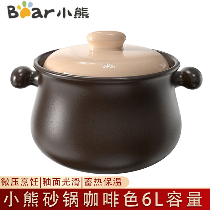 小熊 砂锅6L大容量 砂锅煲汤沙锅陶瓷锅 煲仔饭炖汤熬药砂锅陶瓷汤锅适合7-8人享用 6L容量砂锅详情共用; 微压烹饪|釉面光滑|蓄热保温 兑换价格 7000 里程 会员卡别 终身白金卡 白金卡 金卡 银卡 普通卡 儿童卡 服务 由 广西自贸区贝佳网络科技有限公司 发货并提供售后 颜色: 其他 购买数量: 件 库存件 配送地址: 立即购买 加入购物车 成功添加到购物车 关闭 购物车共有 种商品 总金额为: 组合销售 产品介绍 产品规格 售后服务 产品咨询 发现好货 荣事达/Royalstar 煲锅 砂锅煲汤熬药煮粥焖饭砂锅陶瓷炖汤沙锅家用养生汤锅瓦煲瓦罐4.6L 3900 里程 爱仕达(ASD) 煲锅 砂锅煲汤炖锅2.5L陶瓷煲仔饭砂锅燃气灶明火专用 4800 里程 炊大皇/Cookerking 砂锅5L耐高温陶瓷煲多用炖锅汤锅家用养生煲陶瓷锅明火煤燃气灶专用TCXW5002 4400 里程 炊大皇/Cookerking 砂锅 6L耐高温陶瓷煲多用炖锅汤锅 家用养生煲陶瓷锅 明火煤燃气灶专用TCXW6003 5300 里程 苏泊尔(SUPOR) 砂锅煲汤锅炖锅4.5L养生煲耐高温不开裂陶瓷煲EB45MAT01 6000 里程