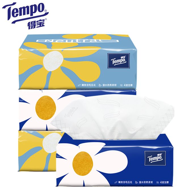 得宝 (TEMPO)Mini系列无香抽纸 4层80抽4包 单提装 加厚四层湿水柔韧 小雏菊太阳花时尚面巾纸餐巾纸家用卫生纸巾 四层加厚,倍添紧致厚实,湿水依然柔韧 兑换价格 1100 里程 会员卡别 终身白金卡 白金卡 金卡 银卡 普通卡 儿童卡 服务 由 京狮文化生活馆 发货并提供售后 包装数量: 1提 购买数量: 件 库存件 配送地址: 立即购买 加入购物车 成功添加到购物车 关闭 购物车共有 种商品 总金额为: 组合销售 产品介绍 产品规格 售后服务 产品咨询 发现好货 维达卷纸 卫生纸实惠装厕纸家用厕所纸巾手纸整箱批有芯大卷家庭装 1200-2300 里程 维达 Vinda 卷纸 140g/卷*10卷 蓝色经典3层卫生纸 1300 里程 心相印抽纸 茶语丝享系列 量贩家庭装 3层*100抽*4包(茶香 压花) 1100 里程 心相印 经典系列 二层面巾纸 180抽*6包*1提 1100 里程 维达Vinda 超韧系列抽纸(3层*130抽*6包) 原生木浆卫生餐巾纸婴儿面巾纸 6包优惠装 1100 里程
