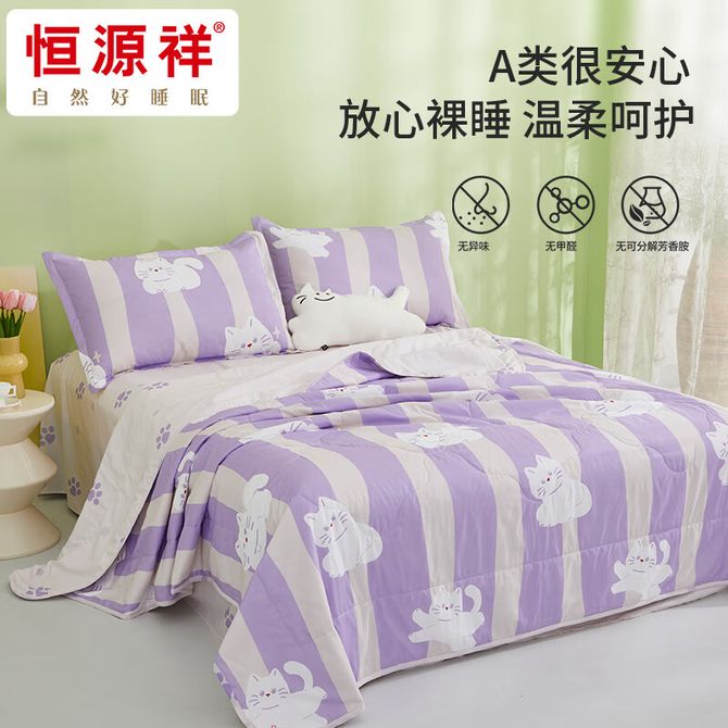 恒源祥 贪睡猫大豆夏被HYX331BZ 20%大豆纤维A类抗菌水洗棉夏被160*210cm
