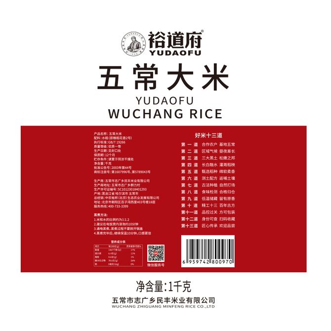 裕道府 1000g五常大米 东北大米香米