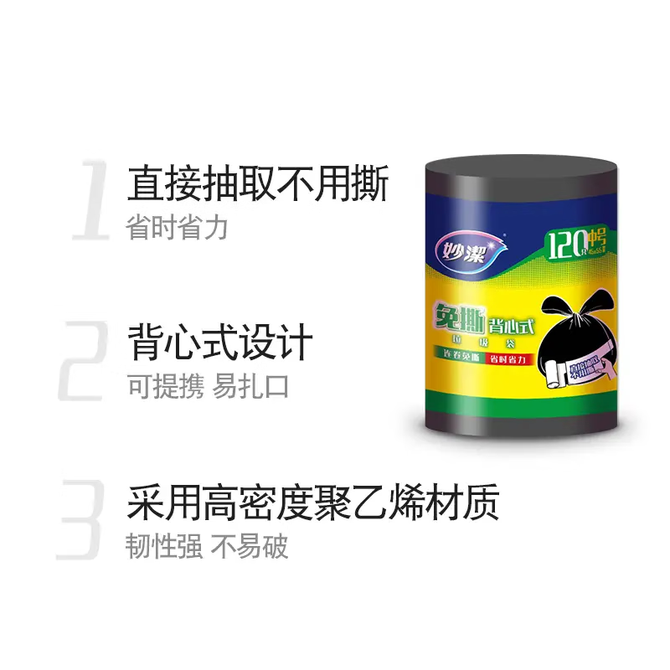 妙洁 免撕背心式家用垃圾袋 中号黑色120只*3包共360只 MBGFVAM120-EC 免撕背心式 轻松抽取 省时省力 方便卫生 兑换价格 3000 里程 会员卡别 终身白金卡 白金卡 金卡 银卡 普通卡 儿童卡 服务 由 百宝诚 发货并提供售后 颜色: 黑色 购买数量: 件 库存件 配送地址: 立即购买 加入购物车 成功添加到购物车 关闭 购物车共有 种商品 总金额为: 组合销售 产品介绍 产品规格 售后服务 产品咨询 发现好货 自然之风桐木保鲜米箱5kg用 4300 里程 乐扣乐扣(LOCK&LOCK)家用厨房玻璃瓶醋瓶油壶油瓶防漏酱油瓶调味瓶佐料瓶CKO101系列550ML 2000 里程 青苹果(QINGPINGGUO) 大号带盖双耳碗大号泡面汤碗EB2008S 1100 里程 洁成 抽绳垃圾袋加厚厨房家用塑料袋50cm*45cm*150只 1100 里程 德铂(Debo) 希莫尔(厨房用具)DEP-DZ662 5200 里程