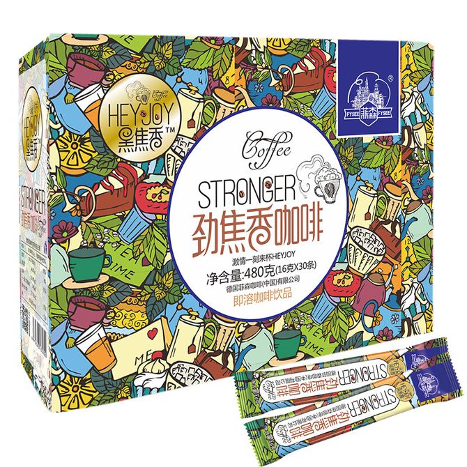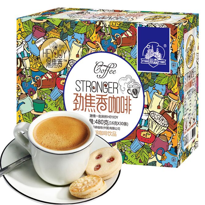 菲森(FYSEE) 三合一速溶咖啡粉原味炭烧特浓咖啡16g*30条云南小粒咖啡盒装 劲焦香咖啡*1盒