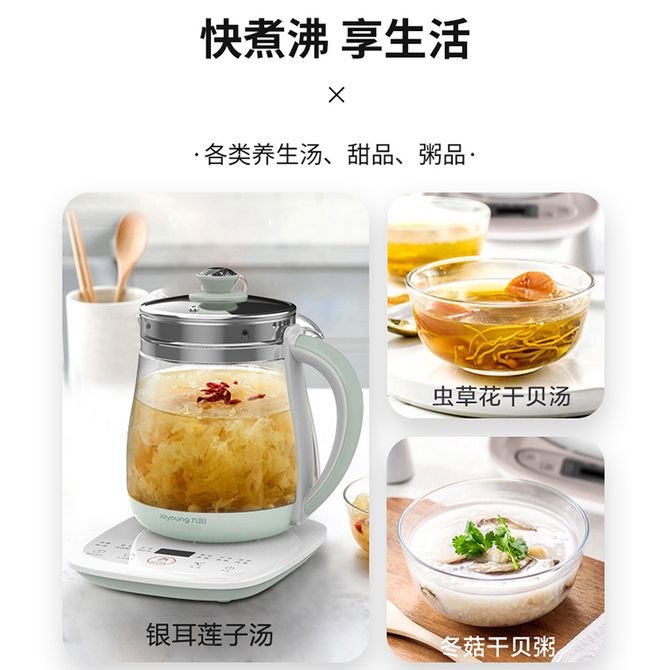 九阳/Joyoung 养生壶 多功能菜单煮水泡茶花茶炖煮滋养电热水壶养生壶 K15FWY6780 12大功能能煮善炖 24小时智能预约 食品级高硼材质 兑换价格 7400 里程 会员卡别 终身白金卡 白金卡 金卡 银卡 普通卡 儿童卡 服务 由 广西自贸区京通桂达科技发展有限公司 发货并提供售后 颜色: 浅绿色 购买数量: 件 库存件 配送地址: 立即购买 加入购物车 成功添加到购物车 关闭 购物车共有 种商品 总金额为: