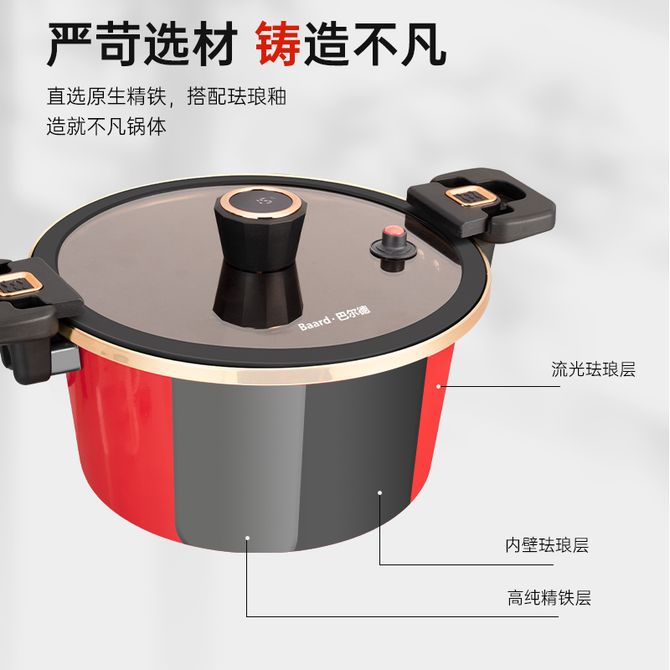 巴尔德 珐琅微压锅26cm汤锅家用多功能加厚抗菌蒸炖煮粥不粘锅电磁炉燃气通用 微压技术,显温盖珠,一锅多用,轻量化锅身,开盖轻松,保留营养 兑换价格 6100 里程 会员卡别 终身白金卡 白金卡 金卡 银卡 普通卡 儿童卡 商品已下架 1. 请联系卖家咨询 2. 逛逛众生缘(江苏)互联网科技有限公司选择其他商品 组合销售 产品介绍 产品规格 售后服务 产品咨询 发现好货 炊大皇(COOKER KING) 压力锅高压锅7重安全防爆8L适合4-8人燃气电磁炉通用 24cm 12200 里程 爱仕达/ASD 高压锅燃气明火防爆六保险5.3L铝合金22CM家用压力锅YL22S2WG 5500 里程 双喜小康装铝压力锅20CMLM-06C 5000 里程 苏泊尔(SUPOR) 高压锅304不锈钢22cm压力锅燃气通用YW223FB1 10900 里程 帝伯朗TIBORANG 高压锅家用燃气电磁炉通用安全防爆压力锅商用大容量多功能压力锅 压力煲 高压锅 22cm 6L 13000 里程